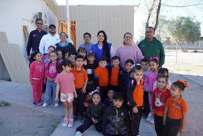 Ojinaga Chih.- Ayer jueves la alcaldesa Lucy Marrufo visitó las instalaciones de este plantel educativo para supervisar los avances del apoyo a los trabajos que se están realizando y saludar a las niñas y los niños que siempre es un honor trabajar en su beneficio.