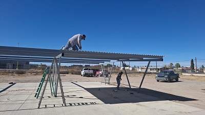 Ojinaga Chih.- En la clínica del ISSSTE se lleva a cabo el trabajo de techado en el área de estacionamiento, realizado por personal del Departamento de Obras Públicas.