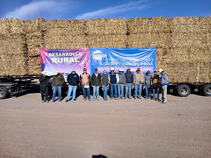 La Secretaría de Desarrollo Rural del Gobierno del Estado, en coordinación con la Dirección de Desarrollo Rural del Gobierno Municipal de Ojinaga, hizo entrega de pacas de rastrojo a productores de ejidos y comunidades de Ojinaga.
