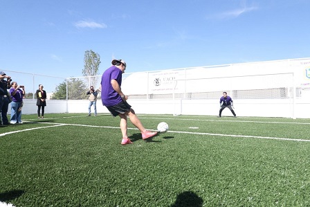 Para concluir con el acto protocolario, los alumnos de esta unidad académica Rafael Loya y Sebastián Limas realizaron la patada inicial en la nueva cancha. Este nuevo espacio busca favorecer la integración, el bienestar físico y emocional, así como el desarrollo de actividades que contribuyan a la formación integral del estudiantado.