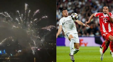 Durante la madrugada, seguidores del conjunto bávaro acudieron al hotel de concentración del club español y encendieron fuegos artificiales mientras los jugadores descansaban.