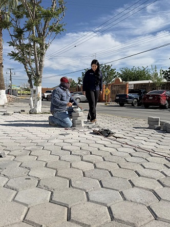 Ojinaga Chih.- La alcaldesa de Ojinaga, Lucy Marrufo, realizó una visita de supervisión a los trabajos que se llevan a cabo en el camellón de la avenida Trasviña, en el tramo comprendido entre Libre Comercio y calle 3ª.
